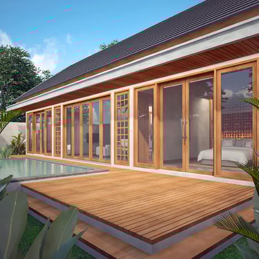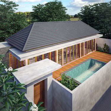 This thoughtfully planned two-bedroom villa is designed to balance modern tropical architecture with comfort and functionality. Expansive floor-to-ceiling glass doors connect the interior living spaces to a private pool deck, creating a seamless indoor–outdoor flow that defines contemporary Bali living.